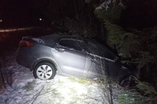 Автомобиль внезапно съехал с дороги и влетел в оказавшееся на пути дерево.