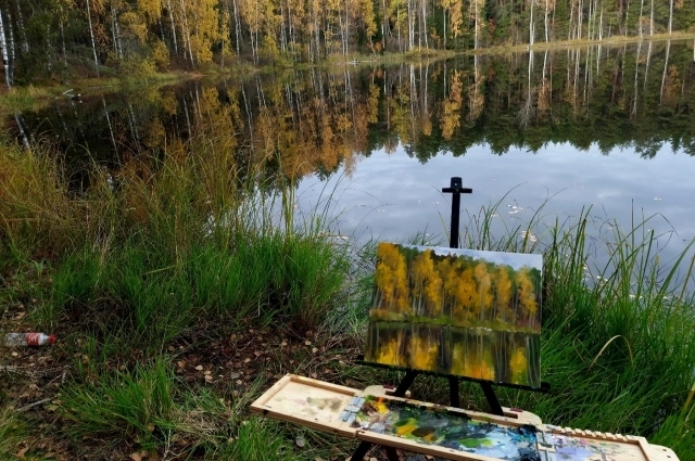 — В основном это пейзажи. Мой муж занимается охотой, сбором грибов и ягод и нередко находит очень красивые места, которые точно мало кто увидит. А эту красоту хочется показать. Например, однажды он случайно обнаружил чёрное озеро, я потом написала картину. Раньше я чаще бывала в лесу. Когда был большой перерыв между рождением старшего и среднего сыновей, то мы активно туда ходили. И я очень хотела показать всем эту невероятную красоту. И сейчас для меня это важно.