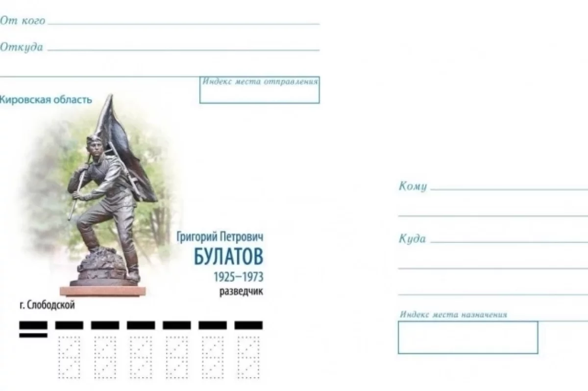 Конверты с памятником герою из Кировской области, Знаменосцу Победы Григорию Булатову появились во всех отделениях связи России, рассказала в своём телеграм-канале глава Слободского Ирина Желвакова.