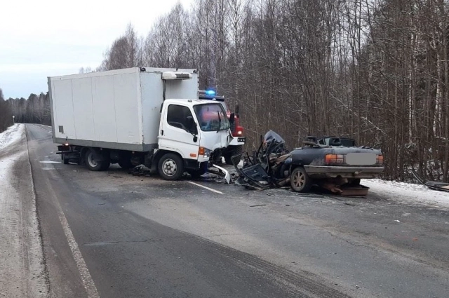 На кадрах с места аварии — изуродованная Audi, от которой осталась только задняя часть на двух колёсах и грузовой автомобиль с повреждённой кабиной. В заднюю часть грузовика врезалась Lada. Она пострадала гораздо меньше. Судя по всему, водитель отечественной машины не успел затормозить, когда автомобиль перед ним попал в аварию.