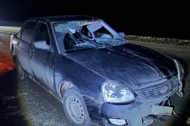 На кадрах с места аварии, опубликованных сотрудниками полиции, — легковая машина с выбитым стеклом, обломившимся передним бампером и слетевшим номерным знаком.