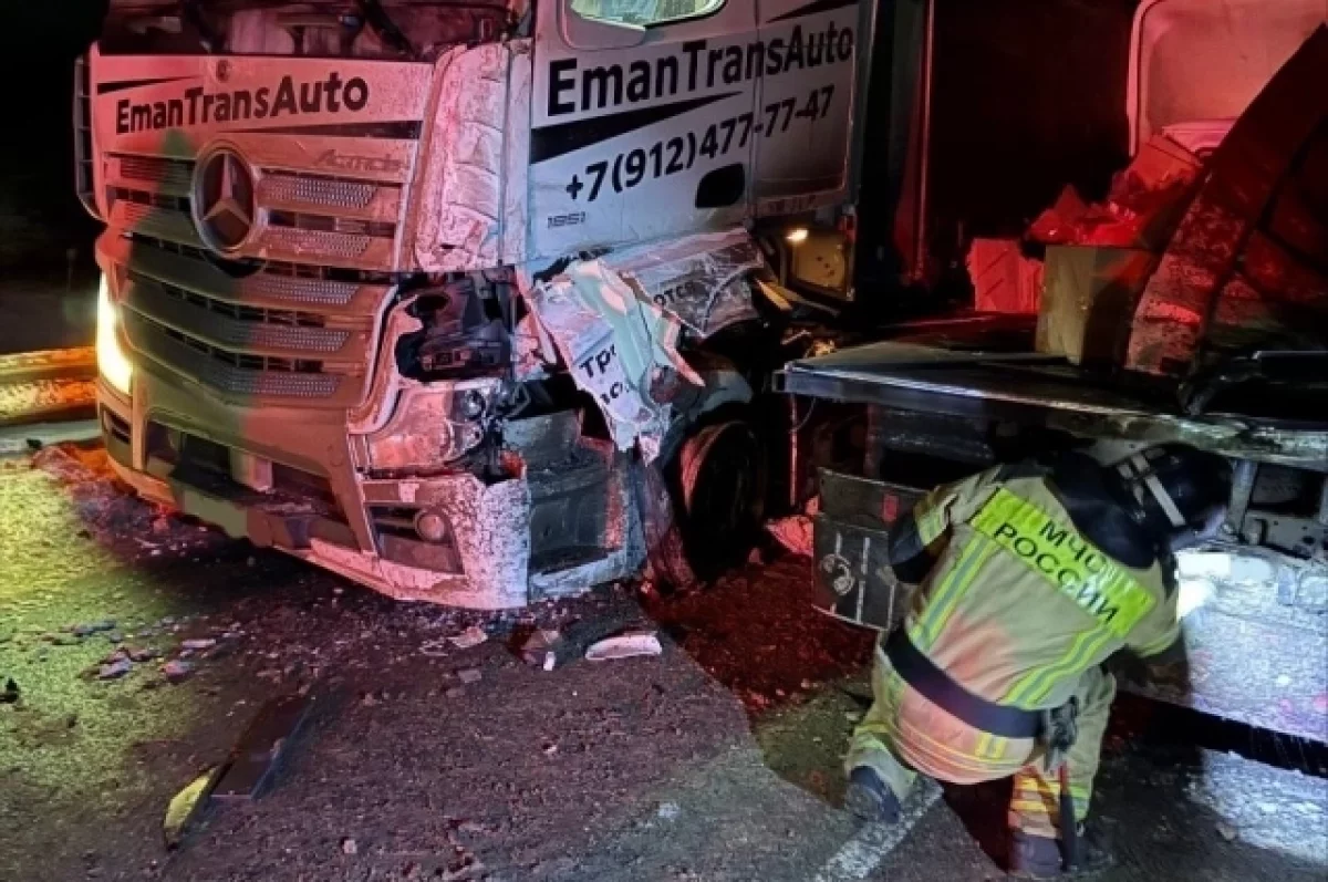Сотрудники МЧС рассказали о ДТП с грузовиками, которые столкнулись на трассе Р-176 (объездной Котельнича) в Кировской области вечером 17 декабря.