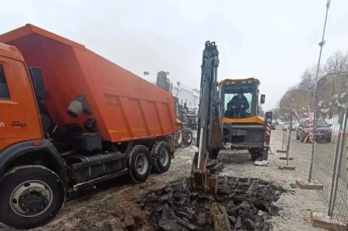 Устранить аварию планировали 23 февраля до 19:00, но работы затянулись. Рабочим пришлось пришлось вскрывать толстый слой асфальта на улице Пролетарской и откачивать большой объем воды.
