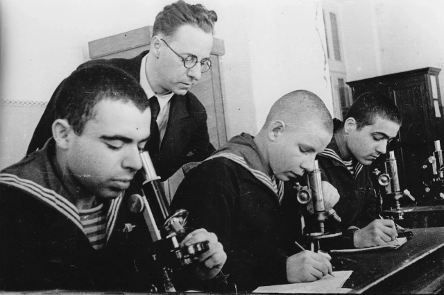 В годы войны в Киров вывезли довольно много учебных заведений. Среди них была и Ленинградская военно-морская медицинская академия. Эвакуировали её со второго раза. Первая попытка закончилась трагически, так как в ноябре 1941 года баржа с курсантами и преподавателями утонула во время шторма. В Кирове академия занимала несколько зданий. В частности, 14-й корпус нынешнего ВятГУ. Госпитальная база находилась в построенном незадолго до войны здании центральной гостиницы (сейчас — отель «Чарушин»).